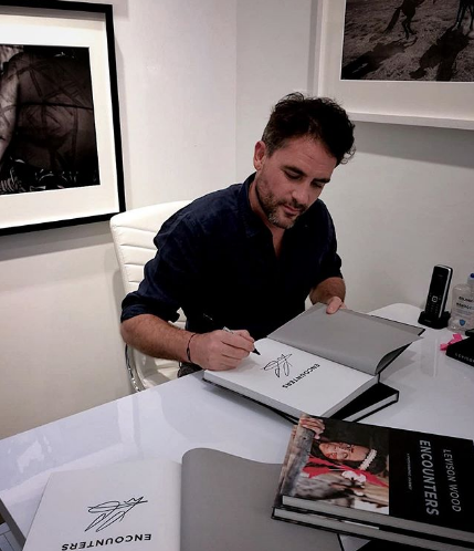 Levison Wood signing copies of Encounters wearing Dundas Navy